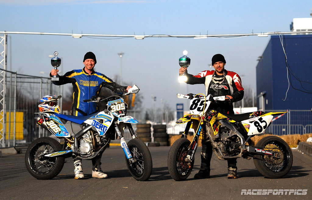So sehen Sieger aus ...Am 23./24.03.2013 fanden die Thüringer Motorradtage 2013 in Erfurt auf dem Messegelände statt. Im Rahmen dieser Messeveranstaltung wurde das 3. Supermoto Show Race veranstaltet. Bei eisigen Temperaturen zwischen -5° bis 0° C fand eines der ersten Supermoto-Rennen in diesem Jahre statt. Auch der MSV Riesa e.V. im ADAC war wieder stark vertreten.
