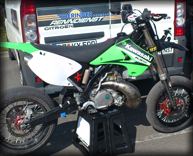 Mike Melde Alex Köcke KöckritzDer MSV Riesa e.V. darf vielversprechend das Vorhaben von Alexander KÖCKE Köckritz und Mike Melde präsentieren. Nachdem sich Köcke im letzten Jahr aus der Supermotoszene zurückziehen wollte, dann aber irgendwie über die Wintermonate wieder auf Teamsuche ging und letztendlich mit Mike Melde zusammengefunden hat, freut uns alle sehr weil beide Jungs Mitglied im MSV Riesa e.V. sind. Mike Melde sein neues Projekt mit einer 300’er Zweitakt- Kawasaki verwirklichen. Mike Melde bewegt sich bereits über 16 Jahre auf der 500’er Zweitaktkawasaki. In den letzten 10 Jahren verschwanden die Zweitaktboliden vom Supermotobildschirm bis letztes Jahr Jochen Jasinski die Zweitakter zum Leben erweckte und Mike Melde sein Herz höher schlagen lies. Ein neues Vorhaben war geboren – eine Supermoto auf der Basis einer 250’er Kawasaki  mit Big Bore 300 ccm stand auf dem Plan.