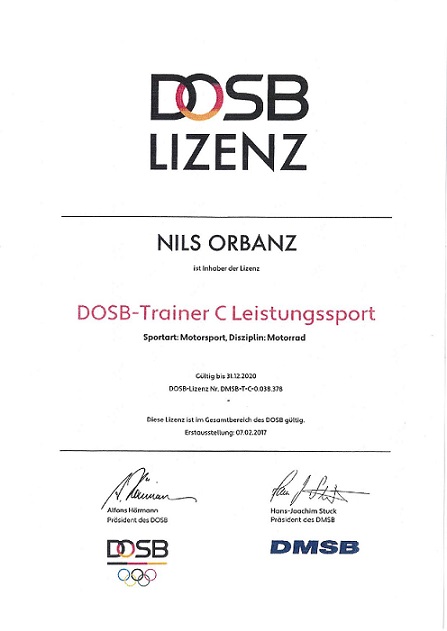 Seit diesem Monat haben wir nun unseren ersten eigenen DOSB Trainer. So können wir unsere Trainings in Zukunft noch professioneller gestalten. Auch den Fahrern des Supermototeams ADAC Sachsen, mit dem Nils Orbanz unterwegs ist, wird er sicherlich einige wertvolle Tipps geben können.